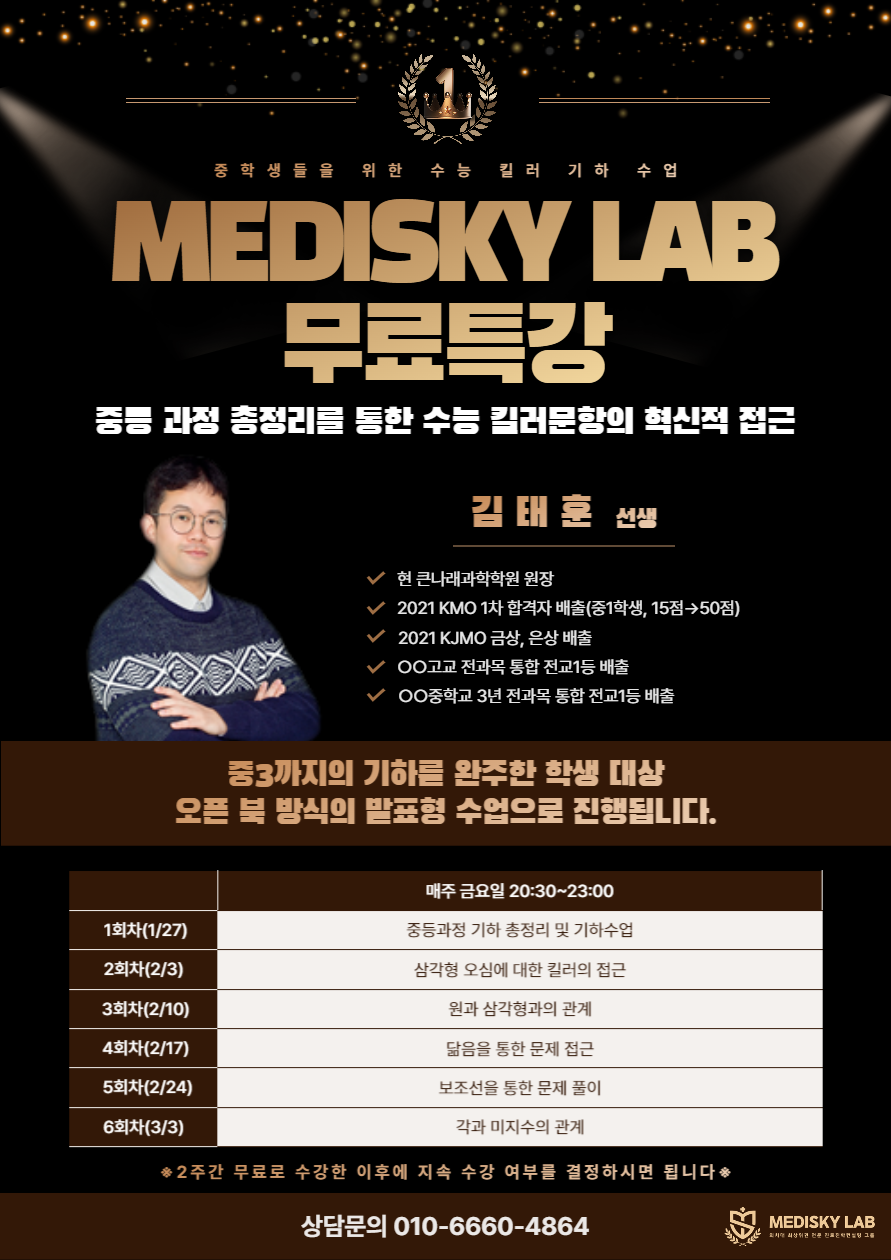 ☆ MEDISKY LAB 중학생들을 위한 수능 킬러 기하 수업 무료특강 ☆