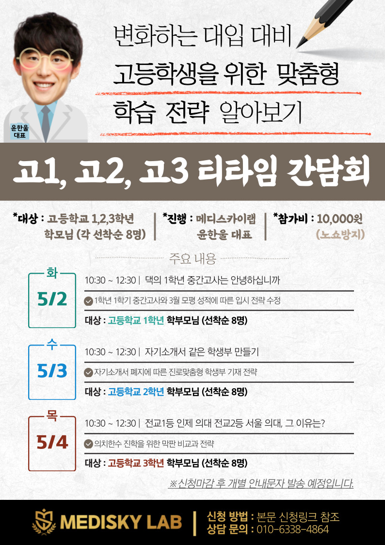 ☞ 대상 학년 : 고등학교 3학년 학부모님 (선착순 8명)